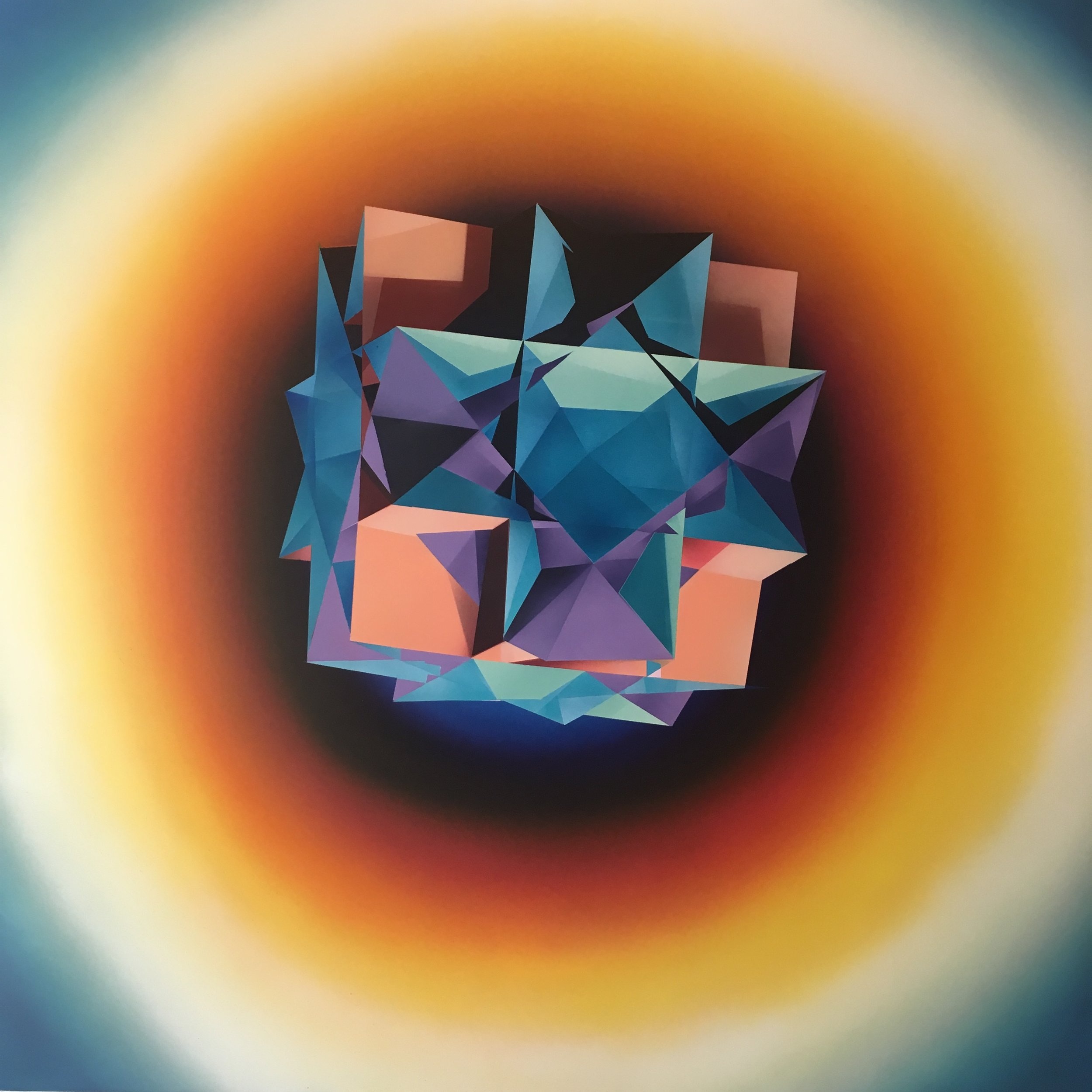 Acrylic airbrush on canvas over panel, 38 x 38 inches